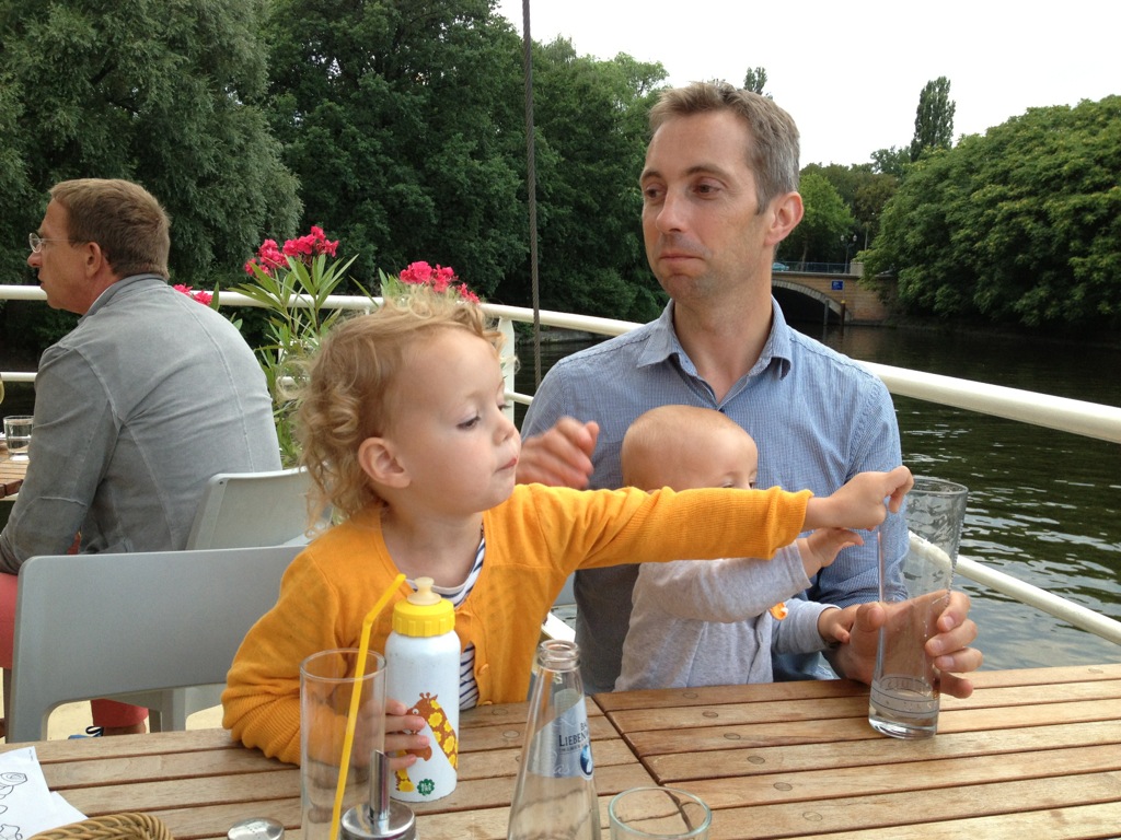 de flat had een flinke binnentuin en overal in de buurt waren speeltuinen en parken. Het was erg warm in Berlijn (38 graden!) dus terwijl Padraic naar het congres was hebben Fergus, Aoife en ik onze paar dagen voornamelijk ondergedompeld in het Berlijnse dagdagelijkse familieleven (afspreken voor de lunch, spelen om de dutjes heen). Aoife heeft zich zelfs een paar keer aan de FKK overgegeven (oftewel, spelen in je blootje, iets wat je in de speeltuinen geregeld zag). Handig hoor, zo'n instant leven in een vreemde stad! We konden zelfs een doos vol babyspeelgoed lenen van Birgit en Mono!